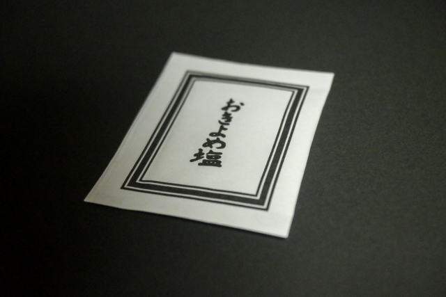 遺品に塩を軽く振りかけて邪気を払うとされる方法です。神道の考え方に基づき、物に残る穢れを祓う儀式的な意味合いがあります。