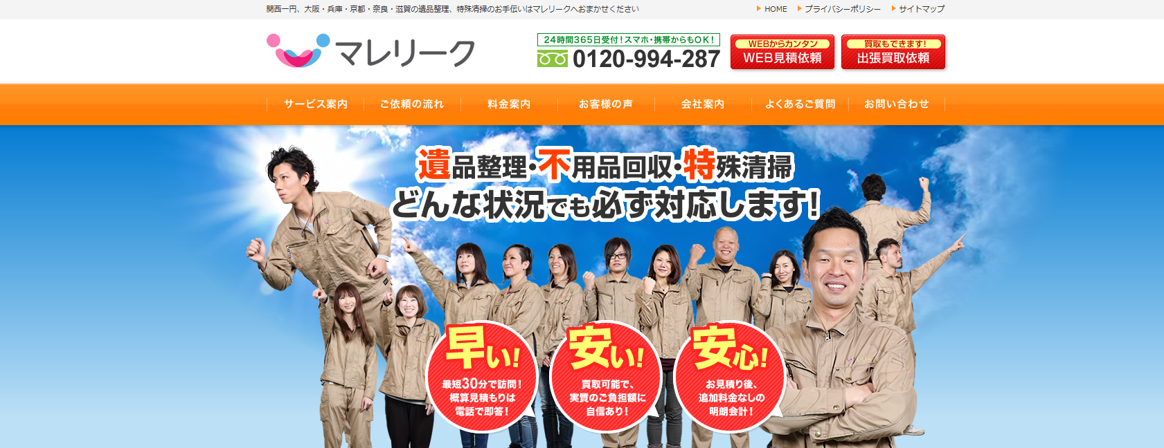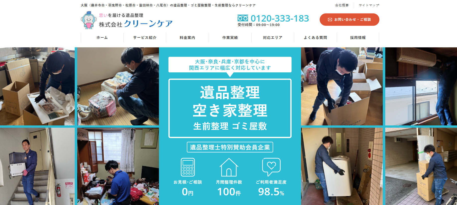 また、関西遺品整理サービスは地域密着型の遺品整理サービスを提供しているため、親身に相談に乗ってくれたり、スピーディに対応してくれたりするのが嬉しいポイントです。
