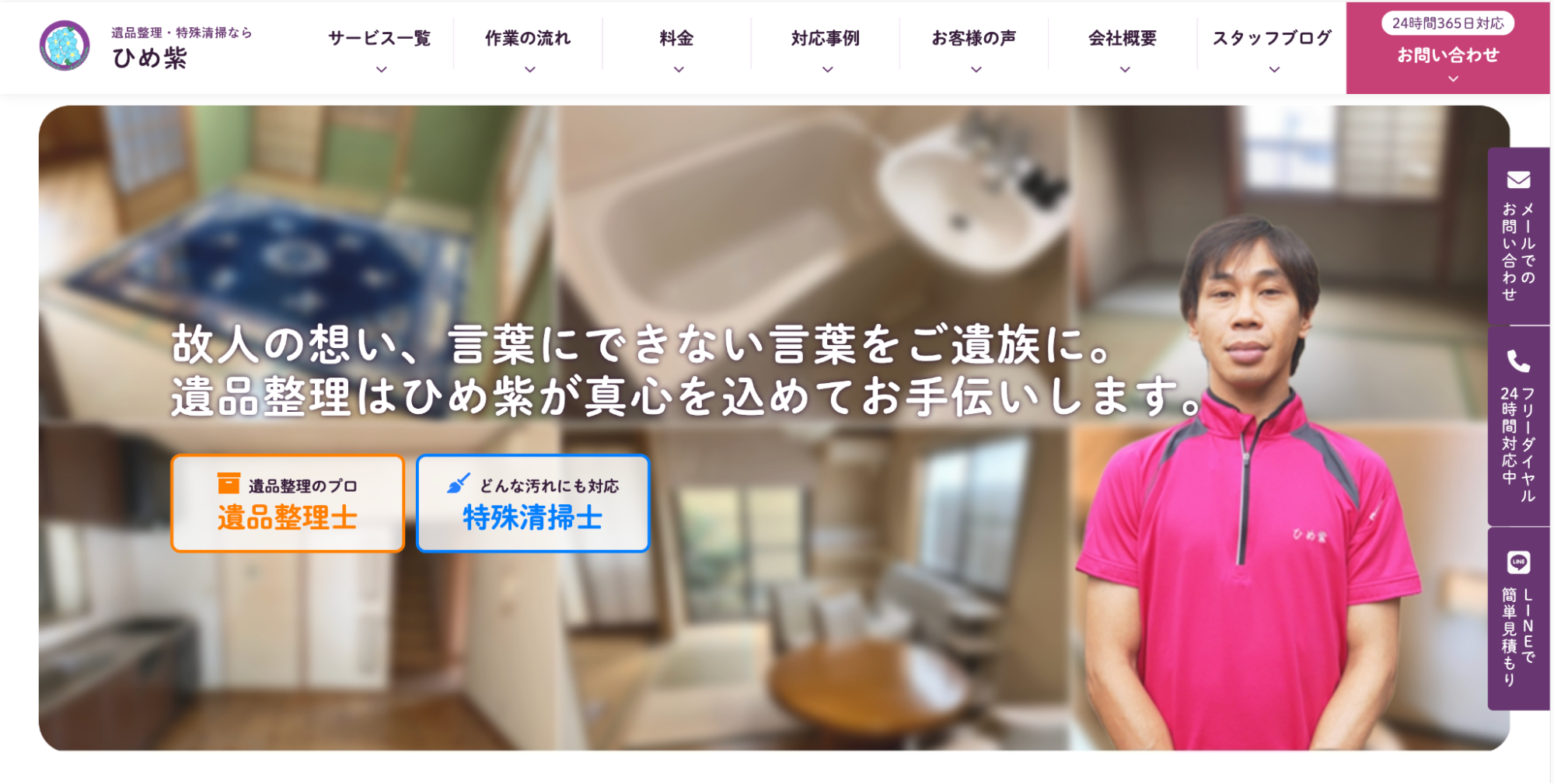 - 遺品整理士・事件現場特殊清掃士などの資格保持