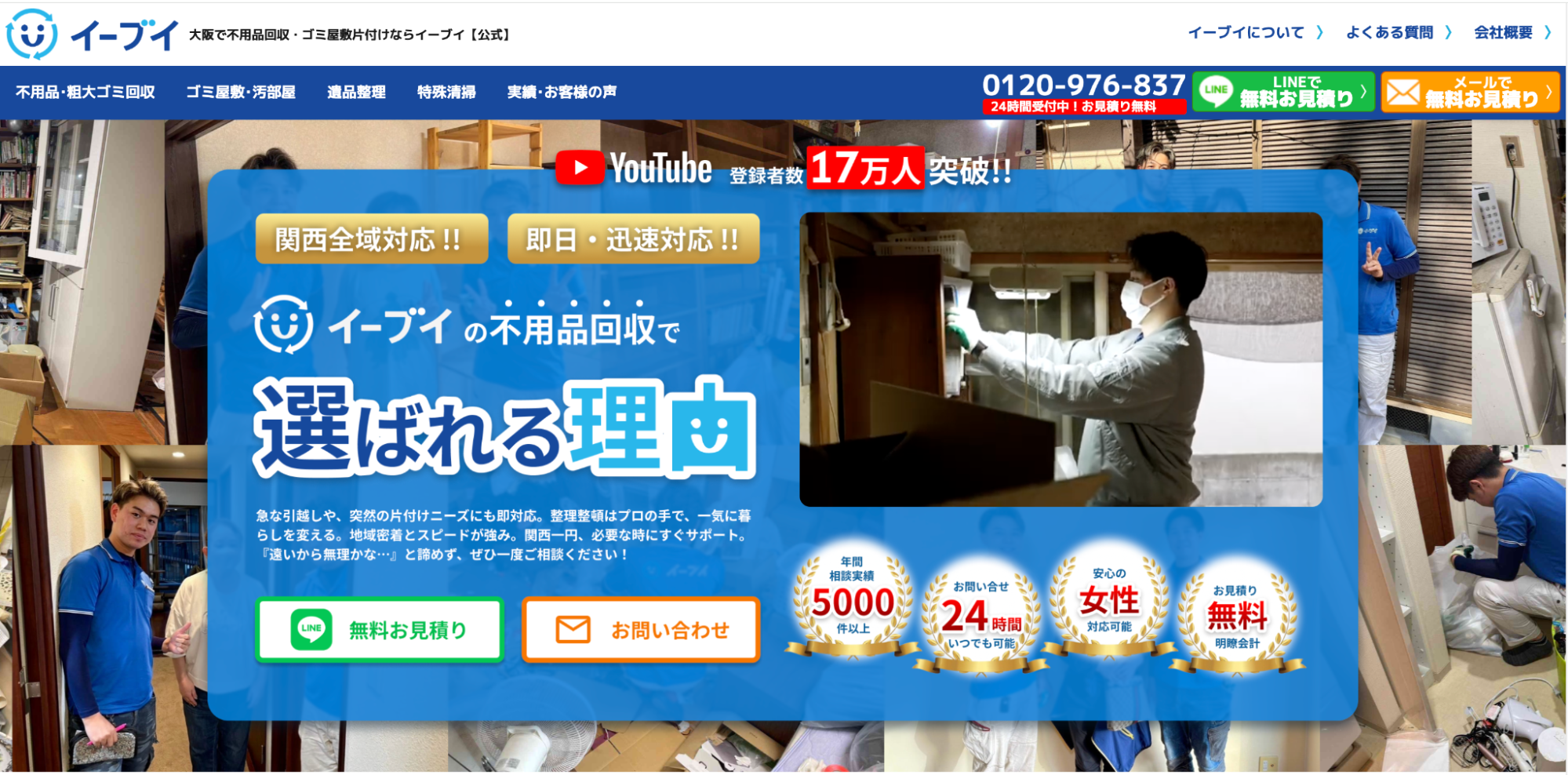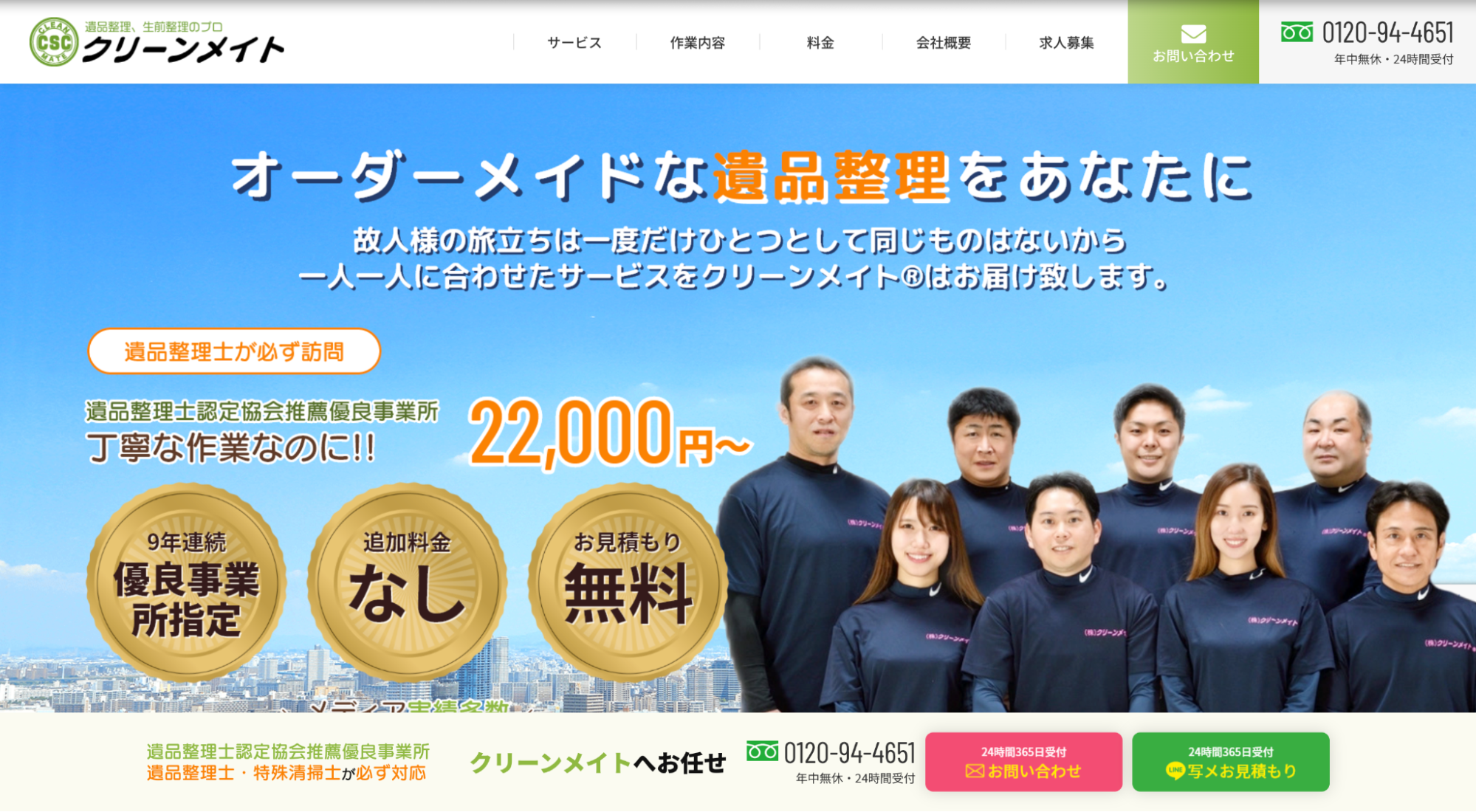 無料で見積もり可能なので、関西圏に在住の方は一度問い合わせてみてはいかがでしょうか。メールやLINEでの見積もり依頼が可能な点も魅力的です。
