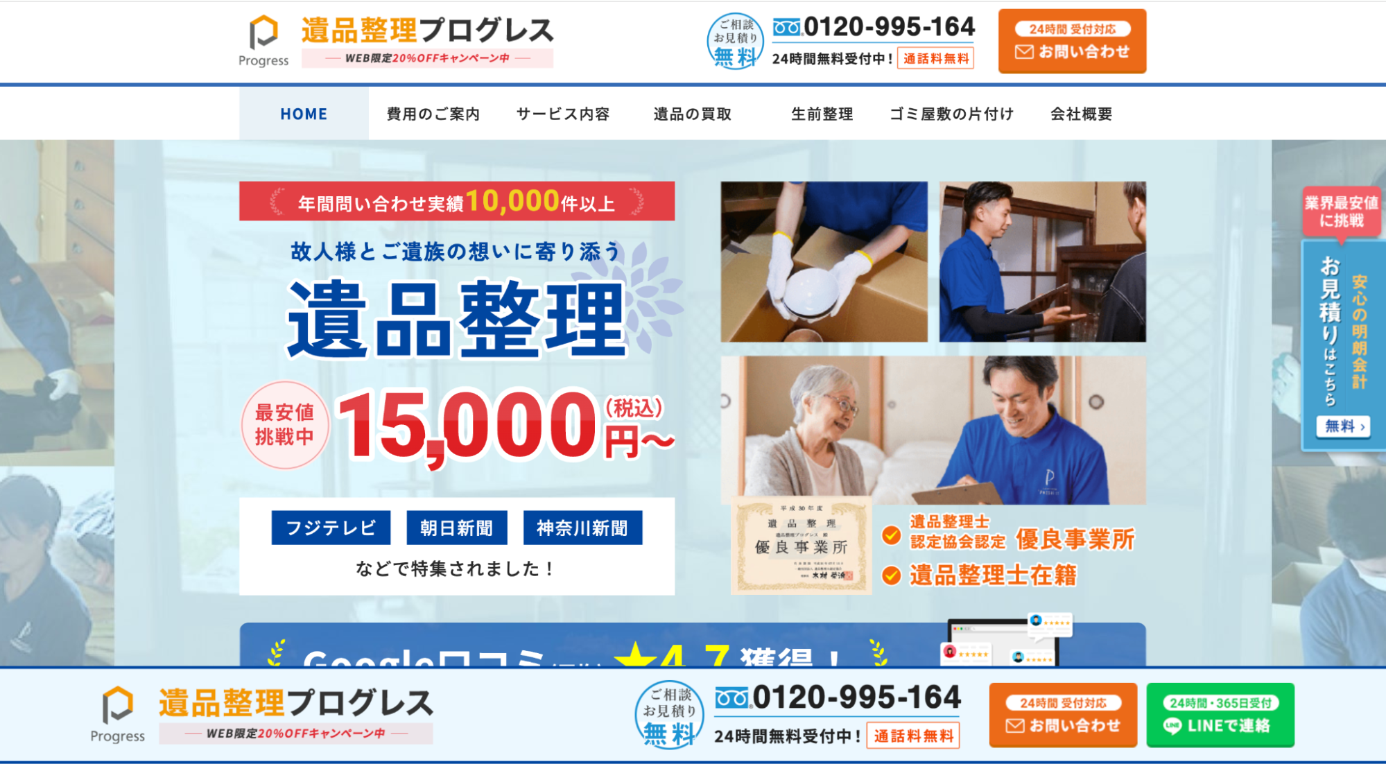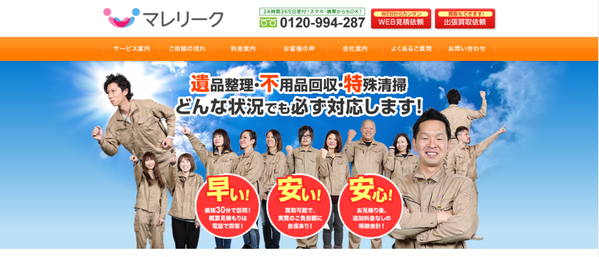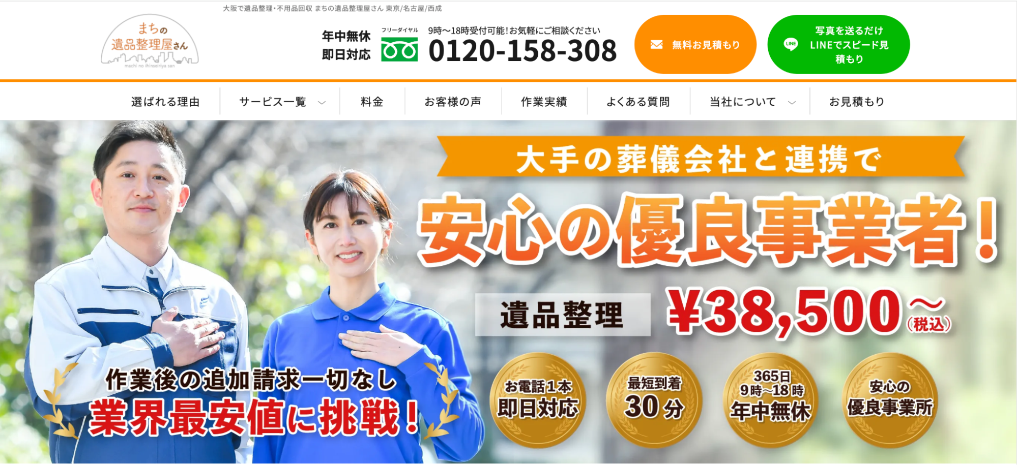 オンライン見積もりや年中無休対応もあり、利便性を重視する方に適しています。