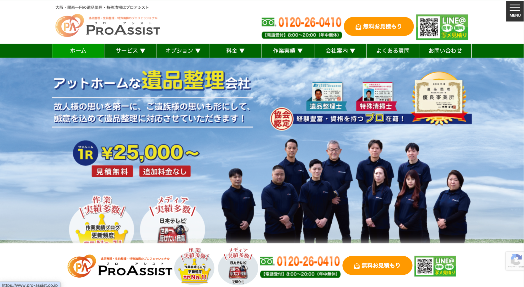 プロアシストは、大阪をはじめとする関西全域で遺品整理・特殊清掃・ゴミ屋敷清掃など幅広い整理サービスを行う業者です。
