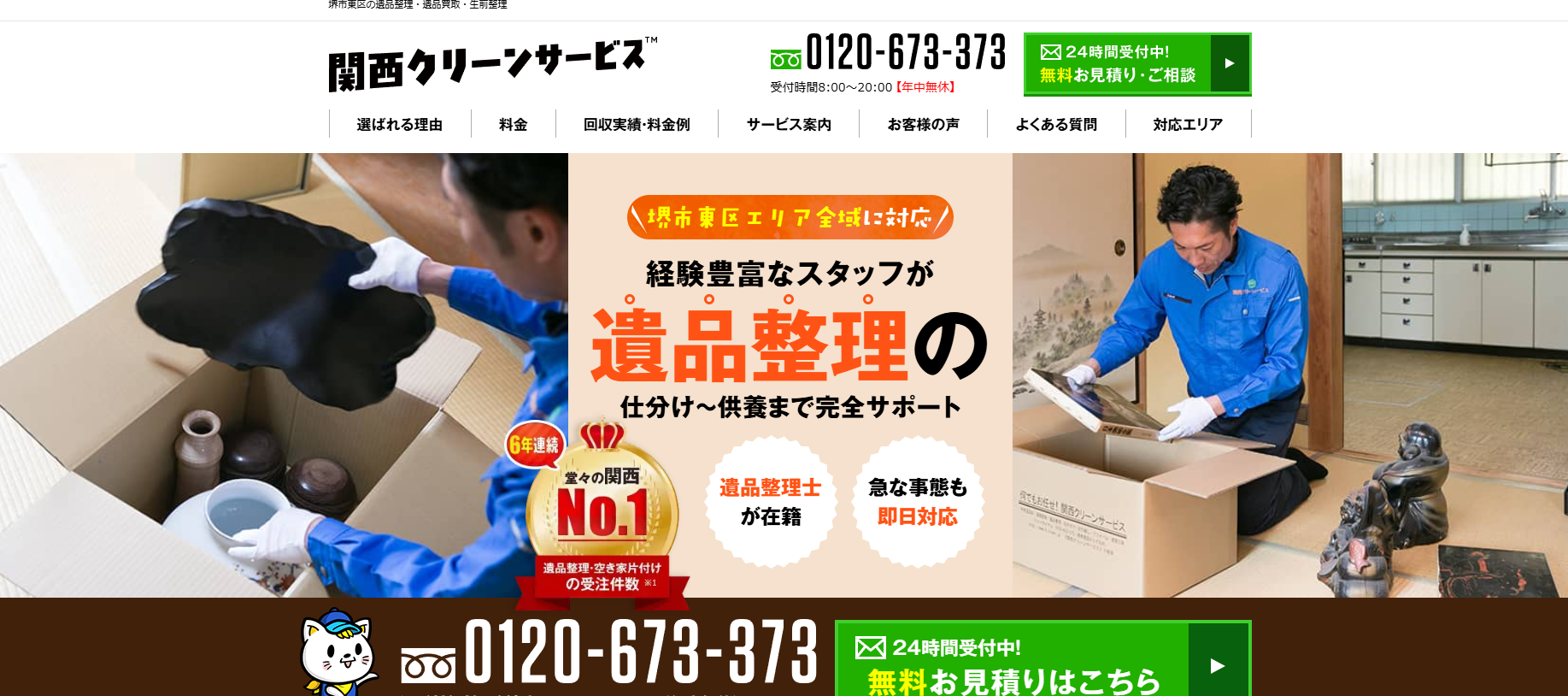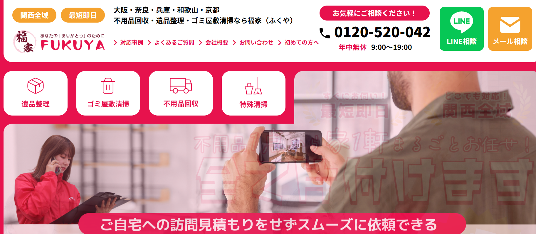 エーストータルサービスは、スピードと低価格を重視する方に最適な遺品整理業者です。急な依頼にも対応でき、最短60分で作業員が到着するため、急ぎの依頼にも対応してくれます。大阪・京都・兵庫・奈良を中心に出張見積もりが無料で、手間なく依頼できるのが魅力です。