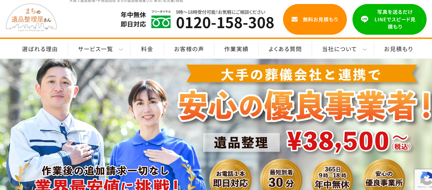 まちの遺品整理屋さんは、創業15年の豊富な実績を持つ信頼できる業者です。遺品整理士や特殊清掃士・古物商などの資格を持つスタッフが、故人の遺品や仏壇・神棚の仕分けから合同供養まで対応します。